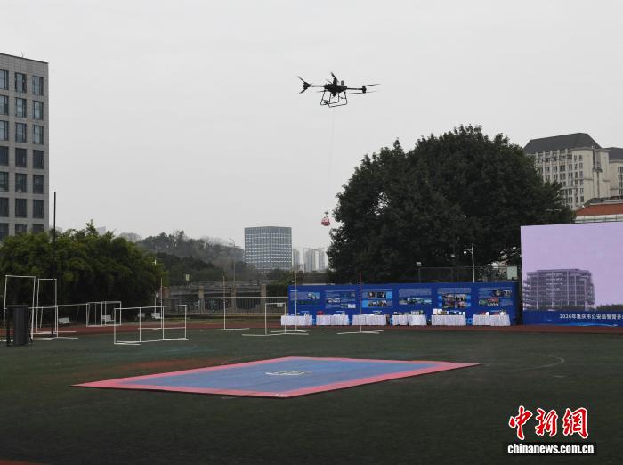 图为举动现场,警用无人机映现超望距物质扔抛。中新社记者 周毅 摄