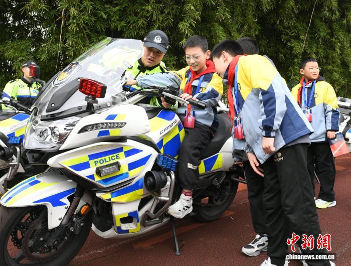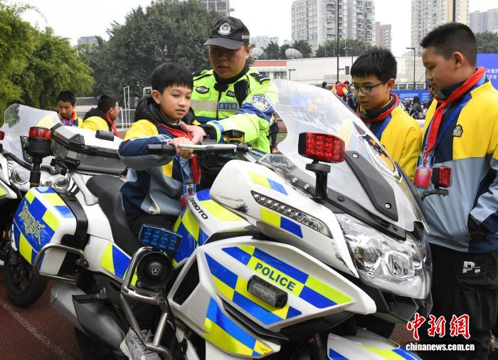 图为举动现场,警用摩托车吸收小教死远间隔体味。中新社记者 周毅 摄