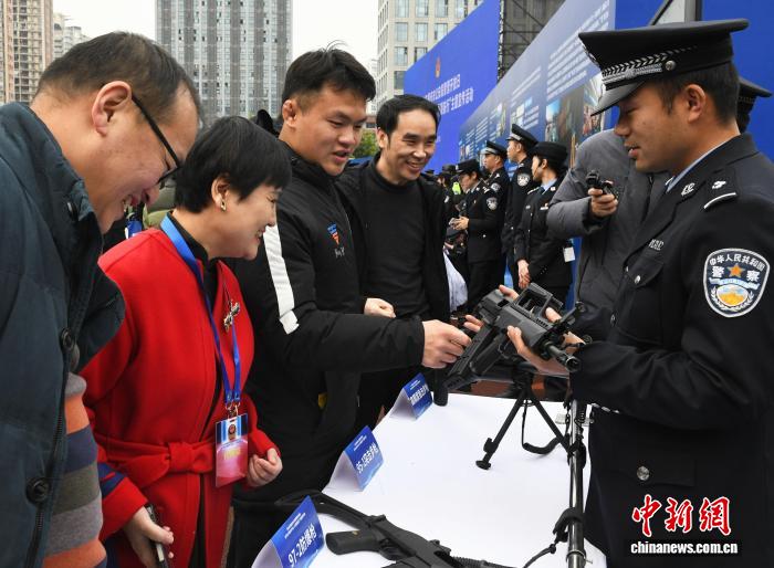 图为举动现场展现的枪械吸收观光者眼球。中新社记者 周毅 摄